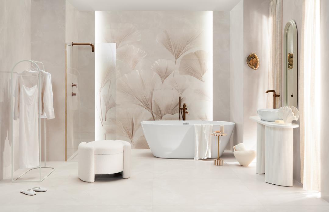 Dekor ścienny z kolekcji Albiano od Tubądzin to propozycja dla osób, które chcą wprowadzić do wnętrza spokój natury bez rezygnacji z nowoczesnej elegancji. Płytka o imponującym formacie 119,8x59,8 cm przedstawia subtelny, roślinny motyw, który dzięki wykończeniu typu lappato zyskuje wyjątkową głębię: powierzchnia efektownie mieni się w świetle, łącząc w sobie cechy matu i połysku. Dzięki procesowi rektyfikacji, czyli precyzyjnemu docinaniu krawędzi, płytki można układać z minimalną fugą, co pozwala uzyskać niemal jednolitą, gładką płaszczyznę na ścianie. Mimo delikatnego wyglądu, jest to solidny gres, który dzięki swojej mrozoodporności i trwałości sprawdzi się nie tylko w salonie, ale także w wymagającej przestrzeni łazienki czy kuchni. Wybierając ten model, zyskujesz bazę do stworzenia wnętrza, które wycisza, a jednocześnie przyciąga wzrok dopracowanym detalem.