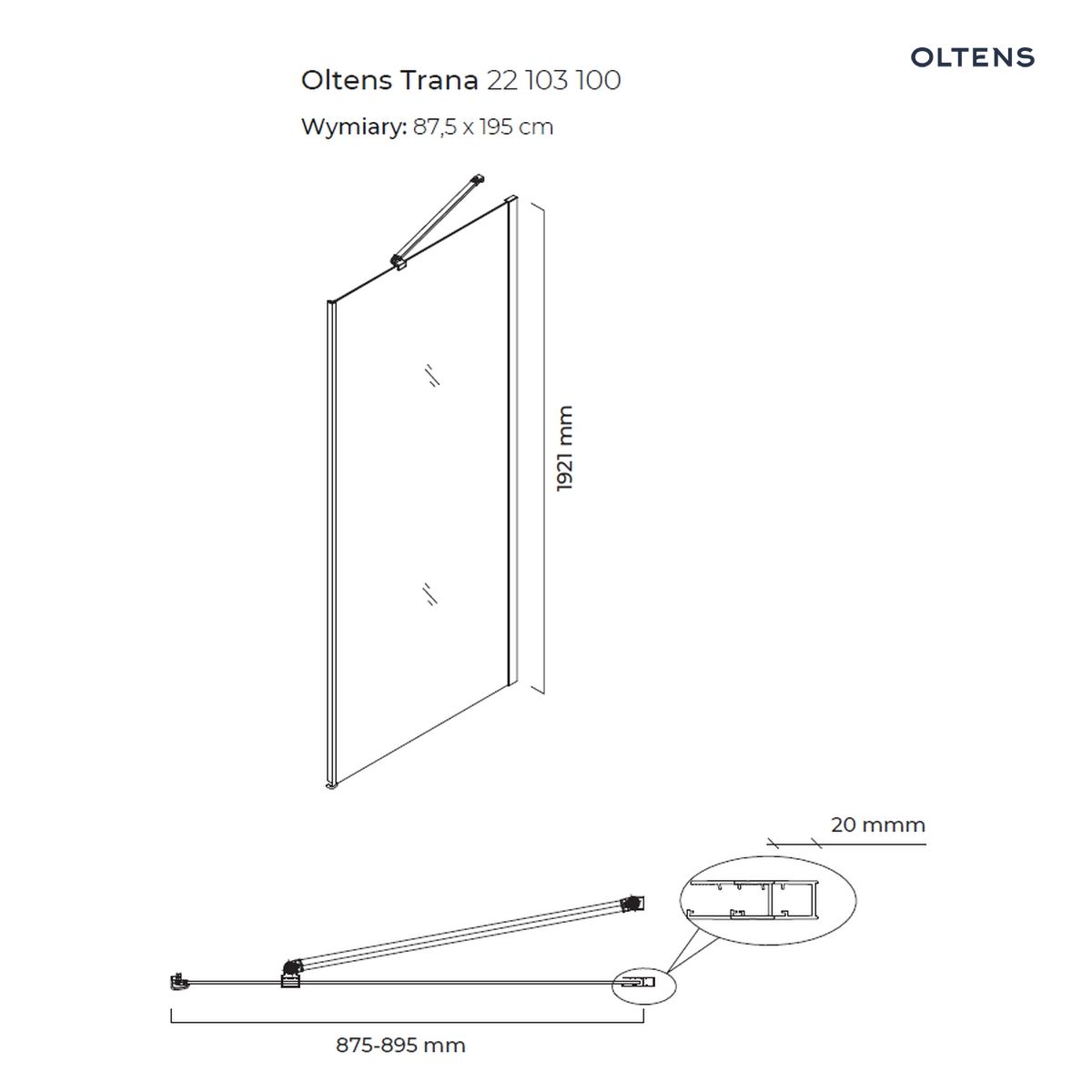 Trana ścianka prysznicowa 90 cm boczna do drzwi 22103100 OltensTrana ścianka prysznicowa 90 cm boczna do drzwi 22103100 Oltens